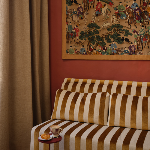 Discover a luxury upholstery fabric collection of stylish woven designs made from natural yarns and enriched by the signature Canovas colour palette. These decorative upholstery fabrics include a multicoloured herringbone, refined tweed, vibrant bouclé and striking semi plain weaves, creating a cohesive and elegant aesthetic for sophisticated interiors.