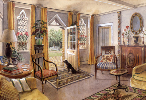 Through the 1920s and into the 1930s John Fowler had developed his decorating skills at the London firm of Thornton Smith and then in the decoration studio of Peter Jones, where he learned techniques such as painting Chinoiserie wallpaper by hand. By the time Sibyl Colefax invited him to join her he had been working for a few years under his own name from premises on the King’s Road. Lady Colefax’s business provided John Fowler with the introductions he needed and the partnership prospered. His talent for creating glamorous interiors on a comparatively modest budget was to prove a sought-after ability in due course, in post-war austerity Britain.